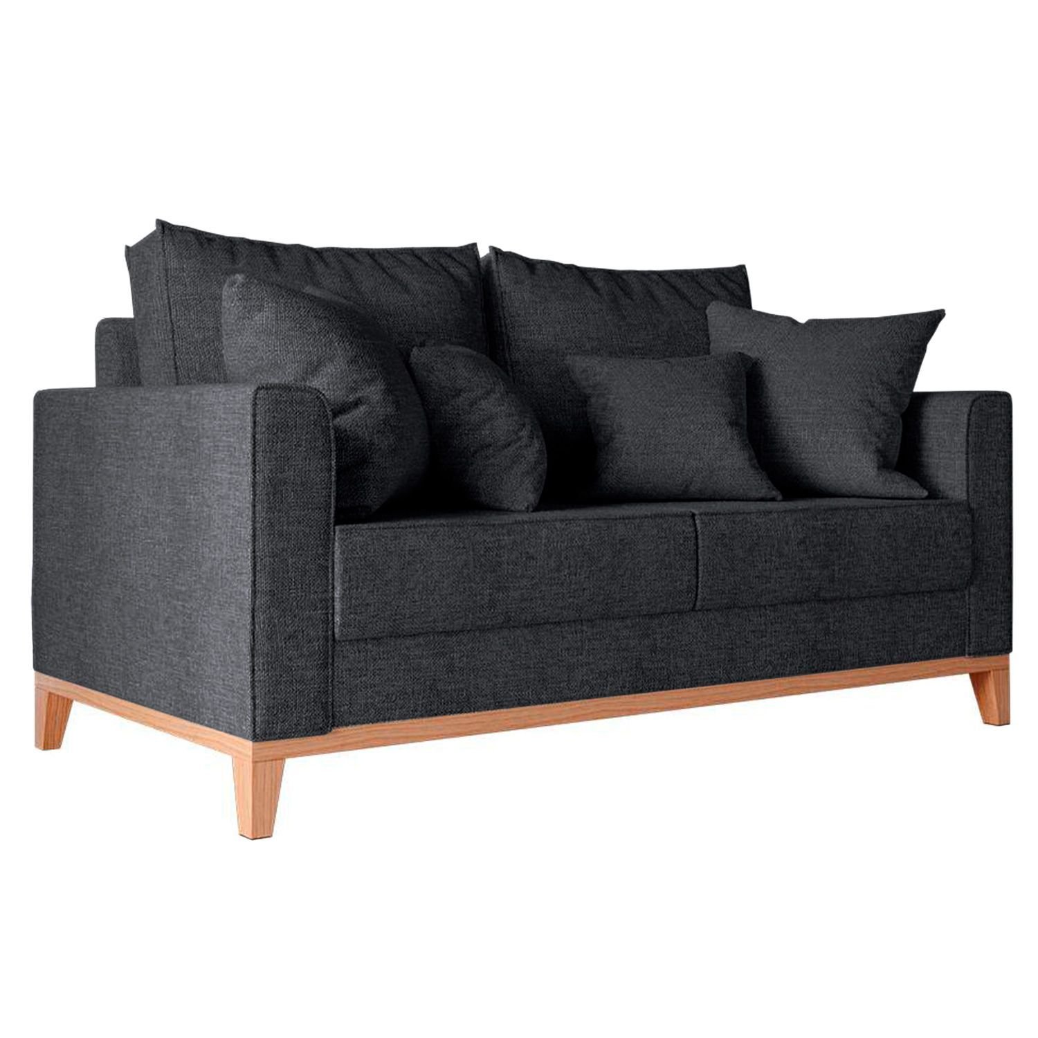 Sofá Beny 2 Lugares com Base de Madeira Linho Grafite