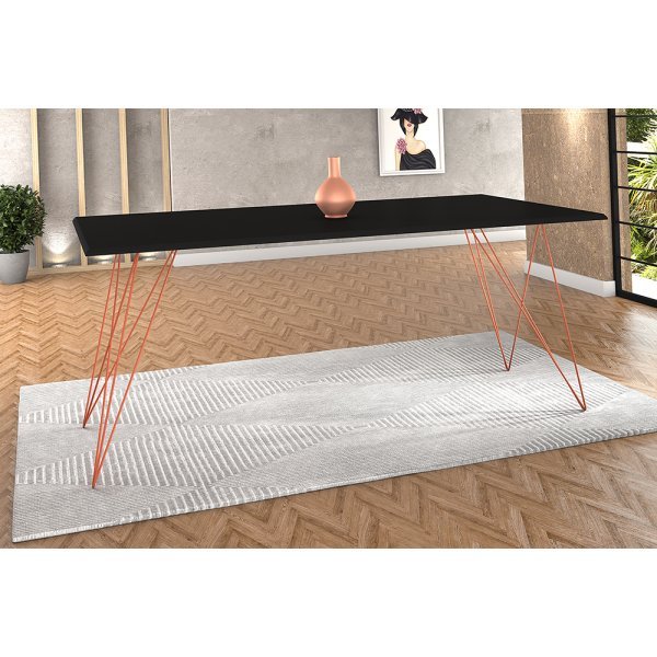 Mesa de Madeira Trama Plus Base Cobre com Tampo Preto 150x90 - New Green