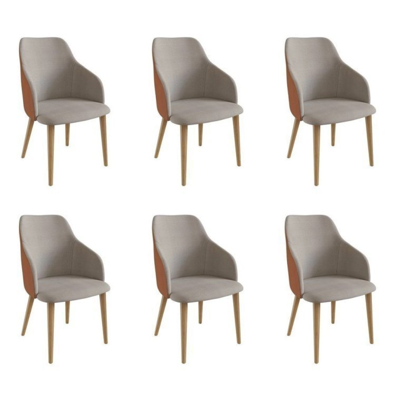 Kit 6 Cadeiras Couríssimo e Linho para Sala de Jantar Anne Yescasa
