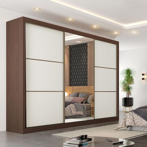 Guarda Roupa MDF Casal 3 Portas de Correr Espelho e 6 Gavetas Vitória Panan Móveis