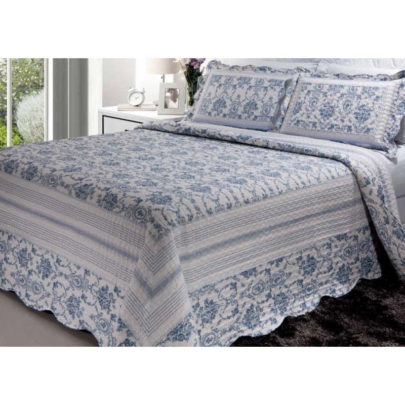 Kit Queen, Casal Padrão e Solteiro Cobre Leito Colcha Bouti 03 Peças Matelado Floral 160 Fios