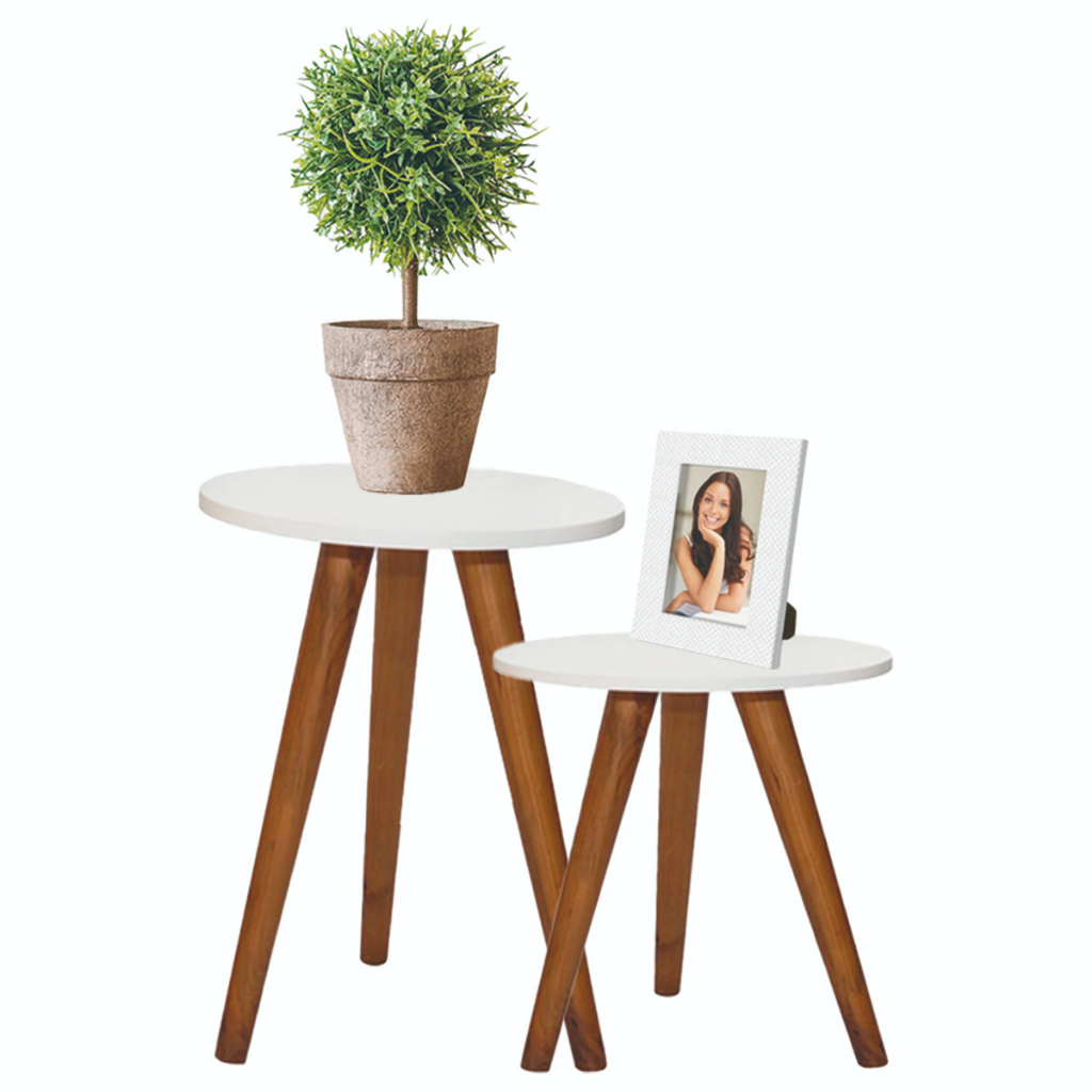Conjunto 2 Mesas Retrô Pés Palito Apoio e Lateral Maju Redonda - Branco - Lojas GD