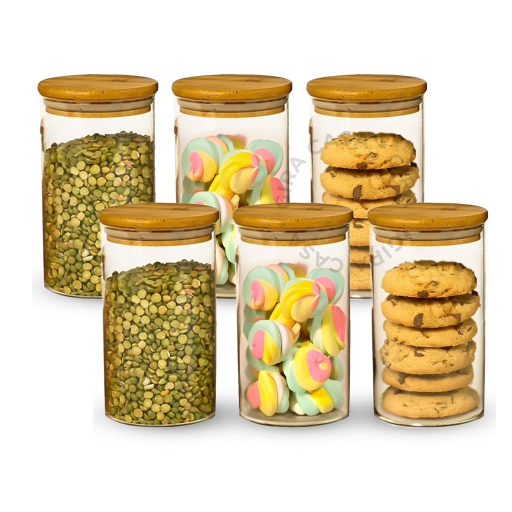 Kit 6 Potes de Vidro para Mantimentos 450Ml com Tampa Bambu
