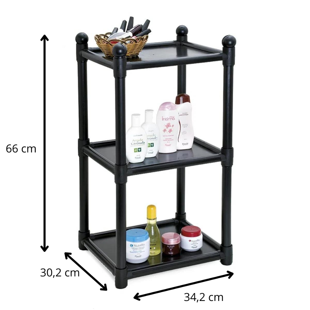 Estante 3 Prateleiras Modular Preta Multiuso para Sala e Quarto Cor Preto Multiuso Kit D