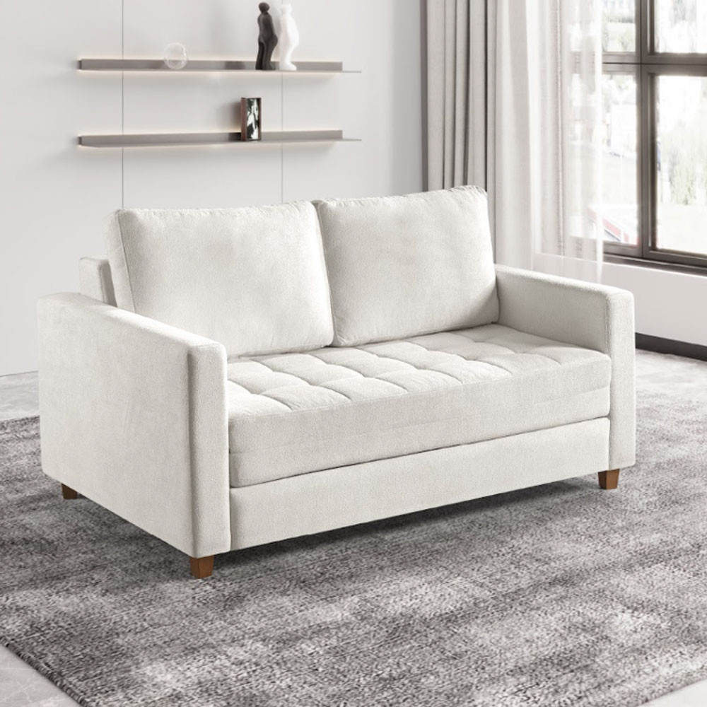 Sofá Cama Casal Marcelle com 2 Lugares em Bouclé e Pés de Madeira Talento Móveis