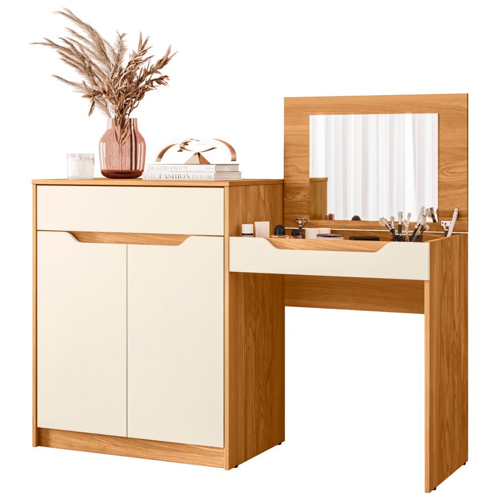 Penteadeira Escrivaninha com Espelho 2 Portas 1 Gaveta Bent A02 Carvalho Grife/Off White - Mpozenato