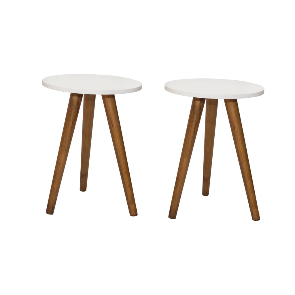 Mesa lateral redonda e canto na cor BRANCO OFF WHITE Kit com 2 unidades com 3 pé palito na cor amendoa