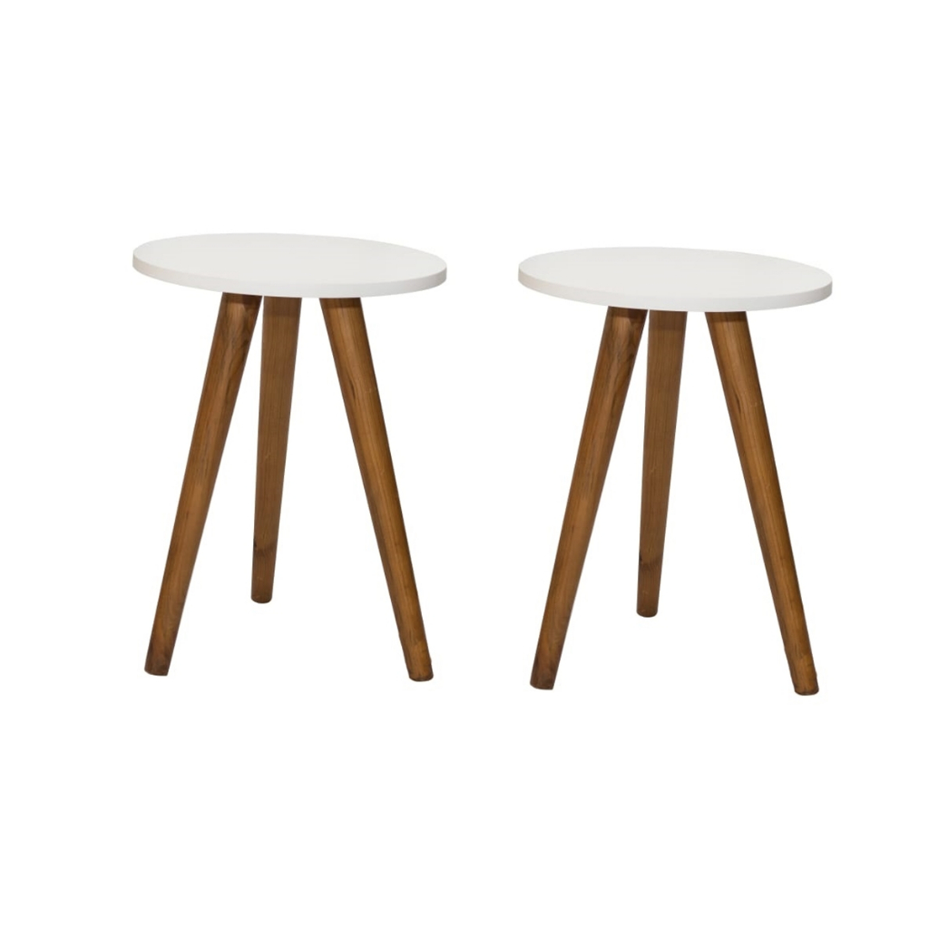 Kit 2 Mesa Lateral Redonda Pé Palito Pequena Retrô de Apoio Canto Sofá
