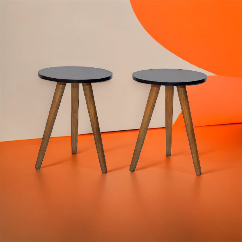 Mesa lateral redonda e canto na cor preta Kit com 2 unidades com 3 pé palito na cor amendoa