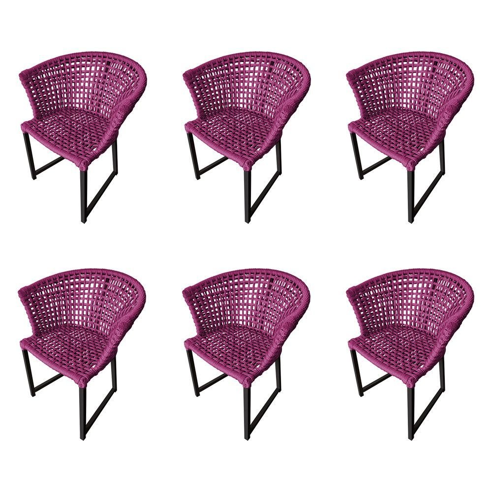 Kit 6 Cadeiras Acapulco Corda Náutica Base em Alumínio Preto/rosa