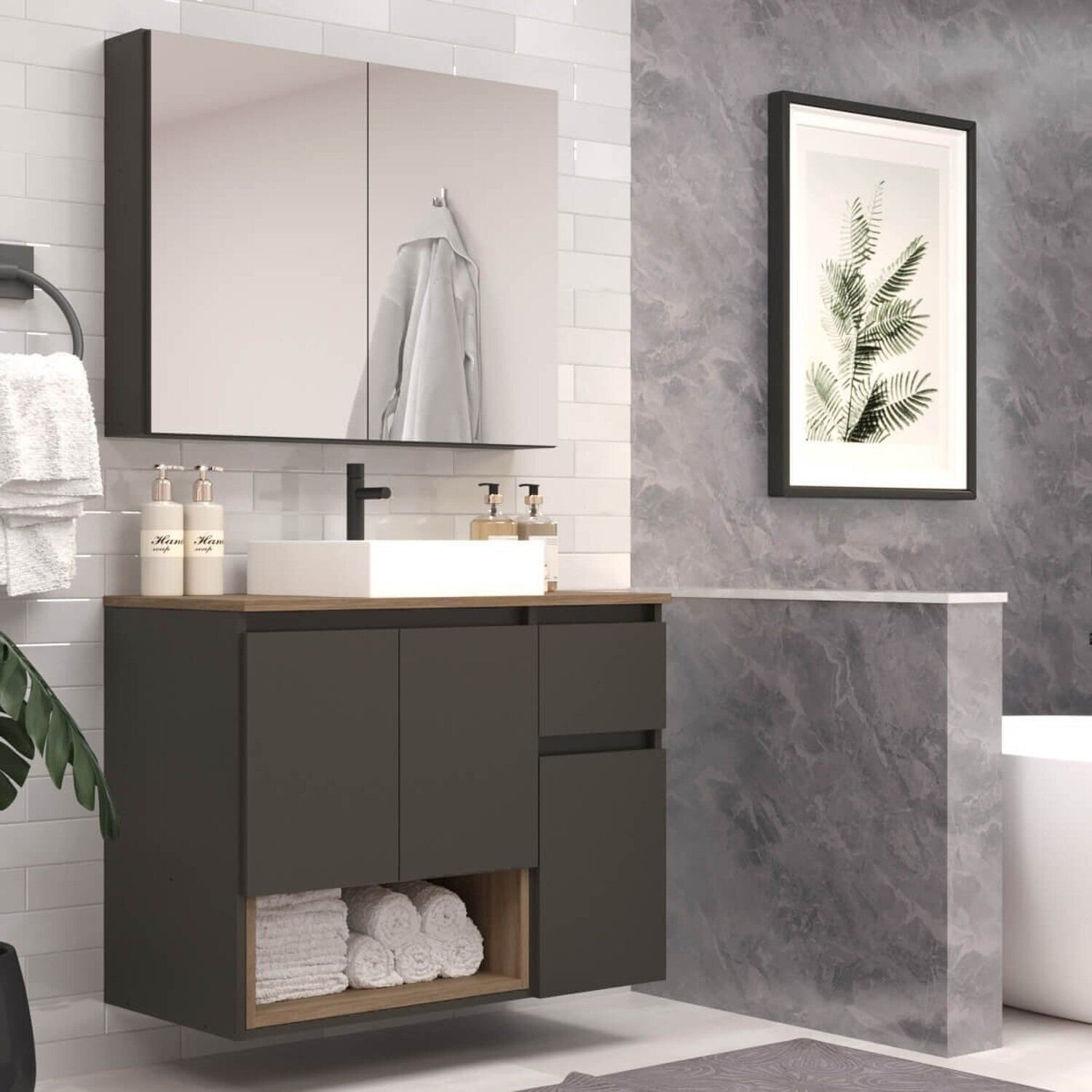 Conjunto de Móveis para Banheiro 80cm Aurora Mel/Grafite