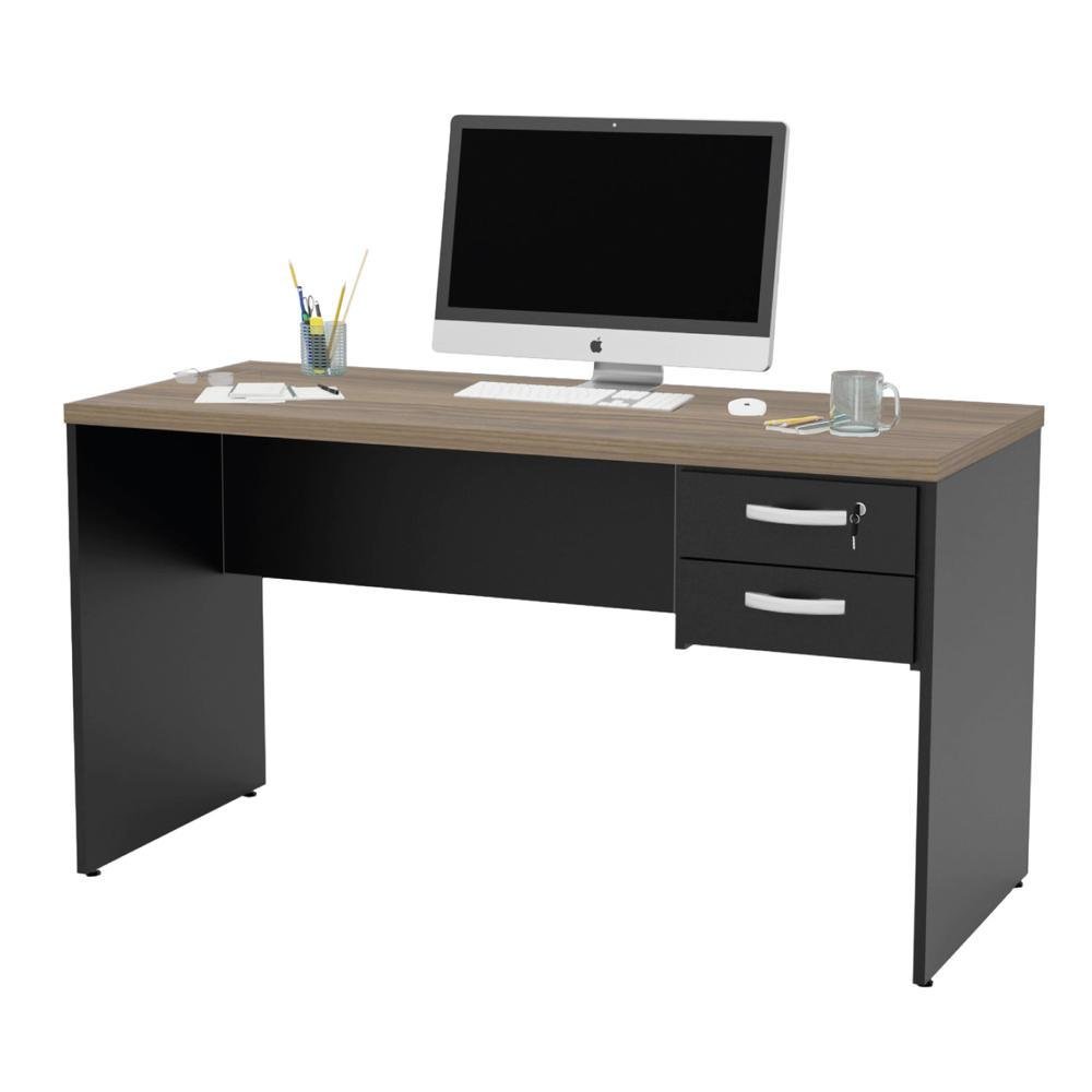 Mesa Escrivaninha 1,50m Pé Painel C/ Gaveteiro Nogal Pr F5 Cor:nogal com Preto