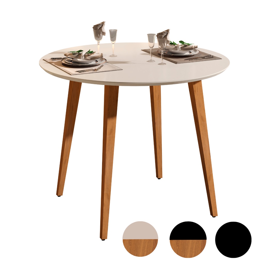 Mesa de Jantar Redonda 90 cm Pés Madeira Tampo MDF