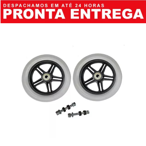 Rodinha Dianteira Aro 6 Prolife para Cadeira de Rodas - Conjunto Completo de 2 Unidades com Pneu PVC Emborrachado, Rolamentos e Eixos
