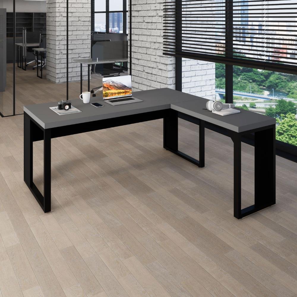 Mesa L Escritório Industrial 1,70m X 0,70m Pés Metal F5 Cor:cinza Sagrado com Preto