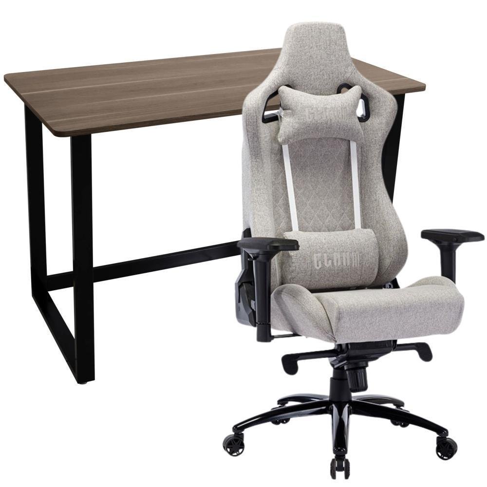 Kit Cadeira Gamer Confortável Até 180kg Com Almofada De Lombar E Pescoço Cor Cinza + Mesa Suporte Escrivaninha Grande Tela Gabinete