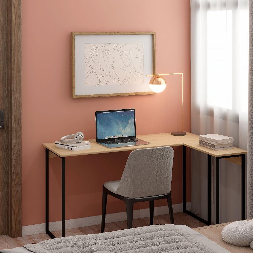 Mesa Escrivaninha em L, Estilo Industrial - Linha Smart Lite 1350mm X 740mm X 1000mm Aveiro Oak / Pr