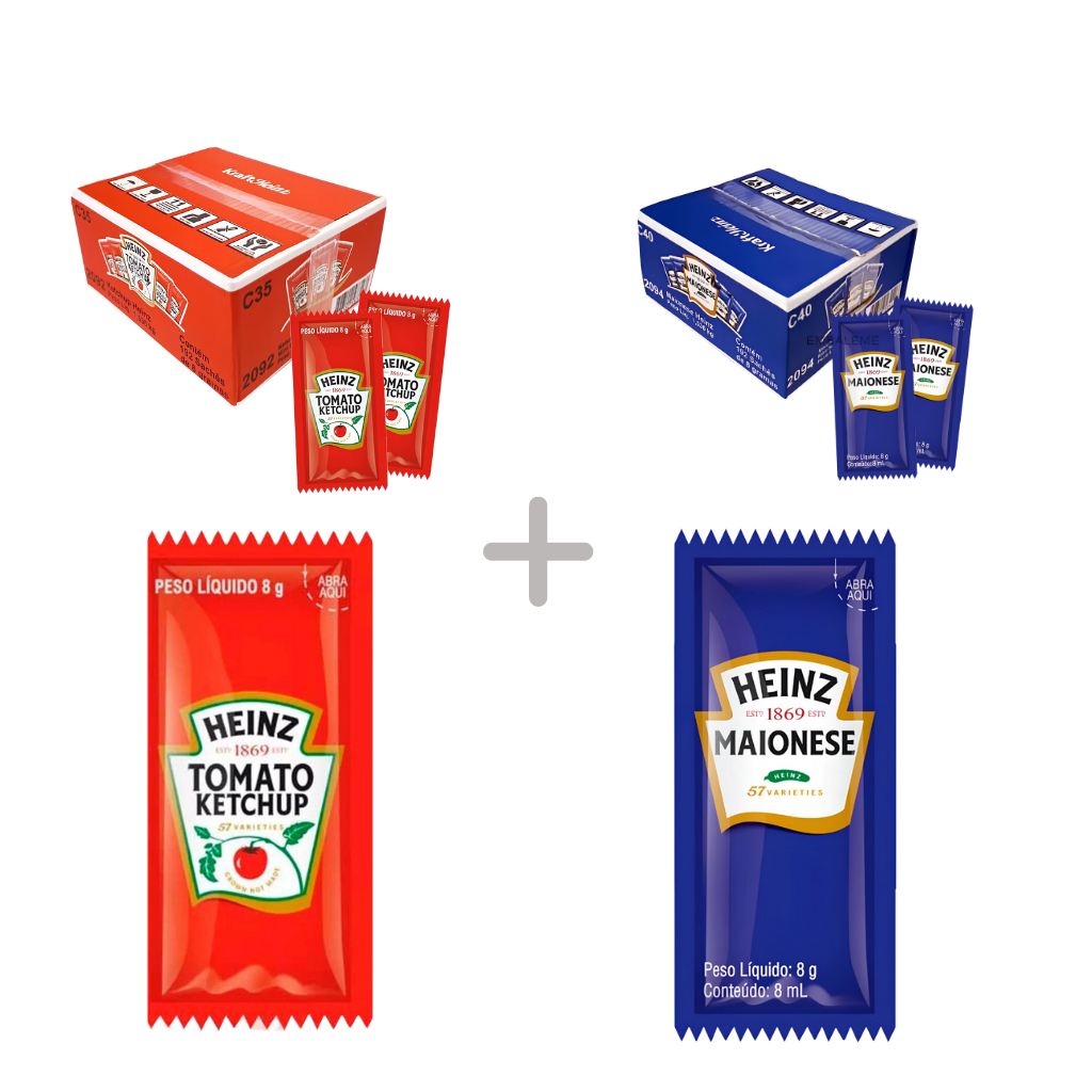 Kit Ketchup e Maionese Tradicional Sachê Caixa 144 Unidades - Heinz