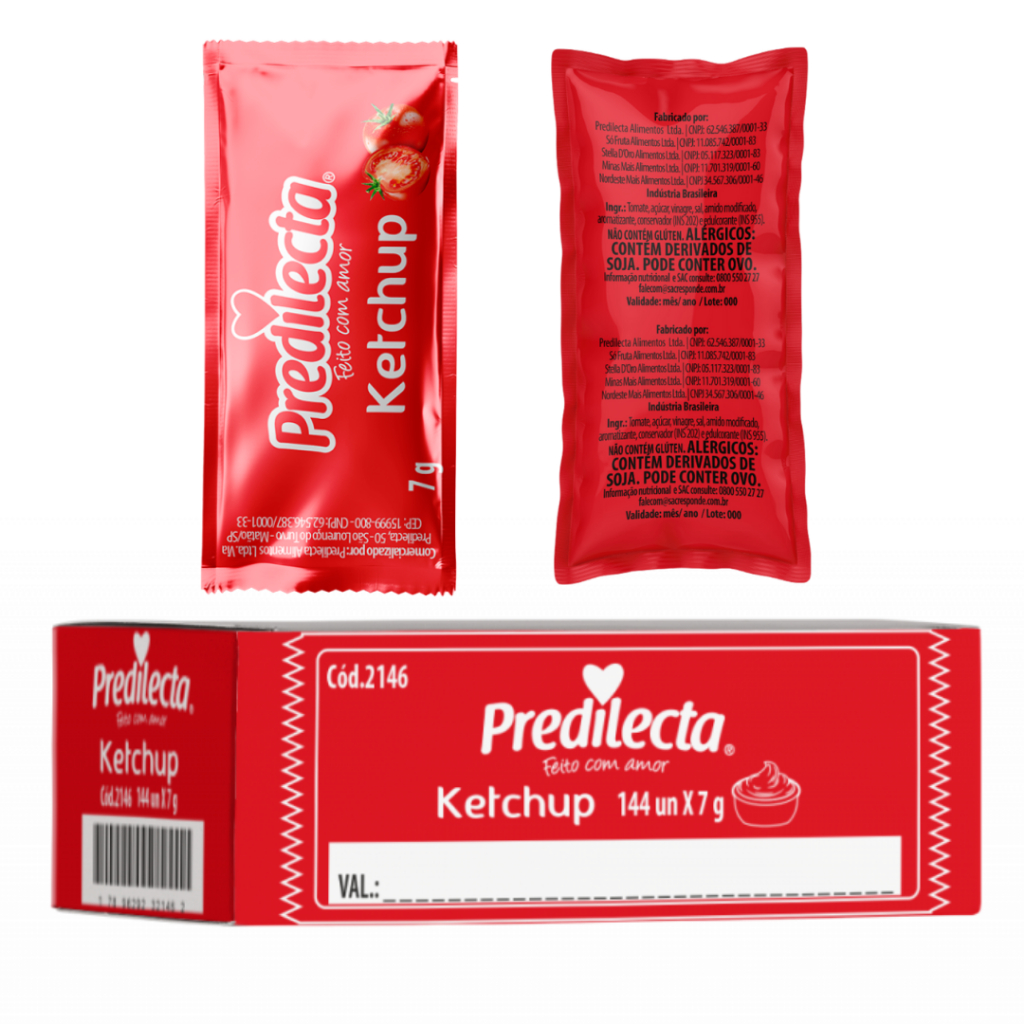 Caixa Sachê Ketchup 144 Un De 7 Gramas Predilecta