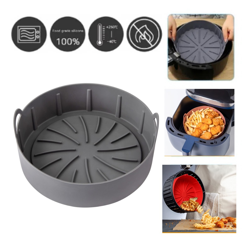 kit 3 Forma Cesto Assadeira Redonda Silicone Air Fryer Fritadeira Alça Lavavel Micro - Ondas Forno 19cm