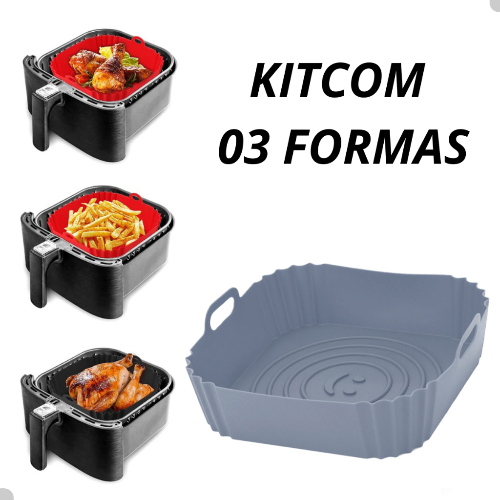 KIT 03 Formas De Silicone Quadrada Air fryer Antiaderente Cesto Silicone Fritadeira Elétrica Grande