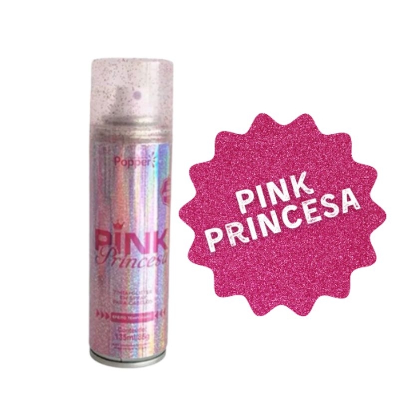 Spray Tinta Glitter Rosa Popper PINK PRINCESA - Para Cabelo e Corpo 135ml/85g