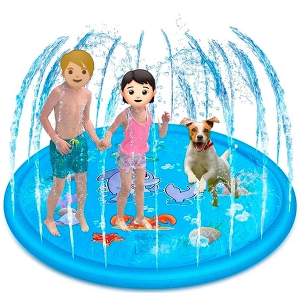 Piscina Inflável Chafariz Spray Jogo de Respingos Infantil Sprinkler Esteira p/ Crianças e Animais