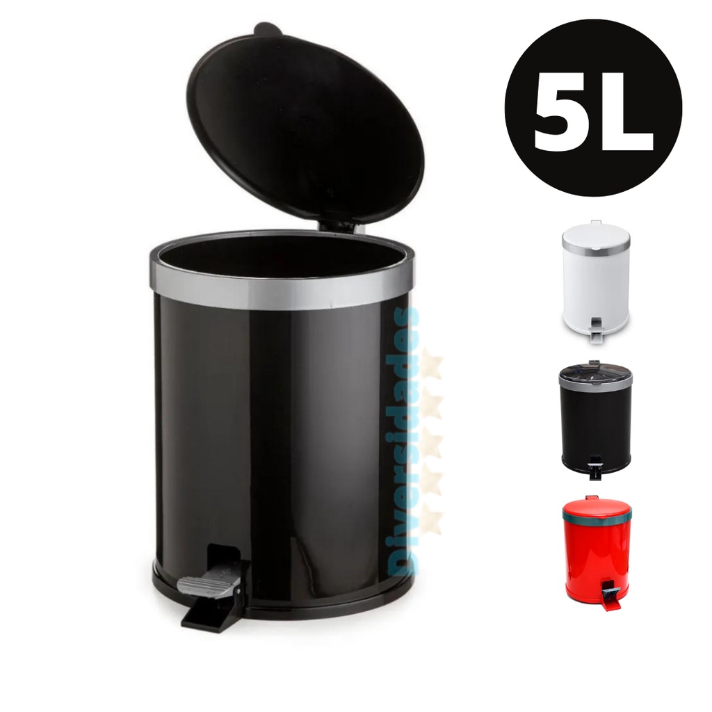 Lixeira Moderna Brilhante 5 Litros para Banheiro Branca, Preta e Vermelha