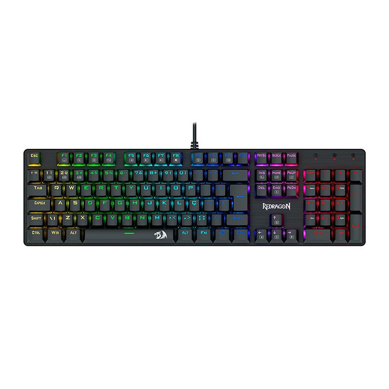 Teclado Mecanico Gamer Redragon Sindri, Rainbow, Switch Marrom, USB, Preto, K671