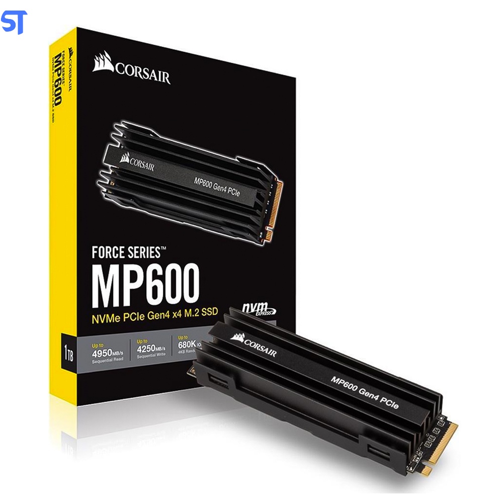 SSD Corsair Force MP600, 1TB, M.2 2280, NVME PCIe, Leitura 4950MB/s, Gravacao 4000MB/s, CSSD-F1000GBMP600R2