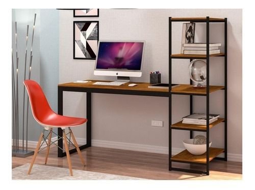 Escrivaninha Com Estante 5 Prateleiras 130 cm Aço Preto Canela Rústico Fit Art Panta
