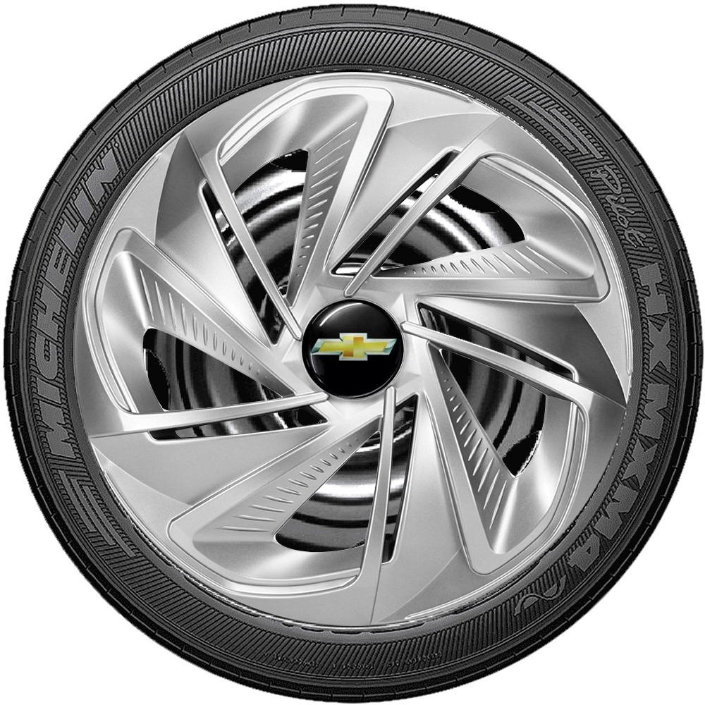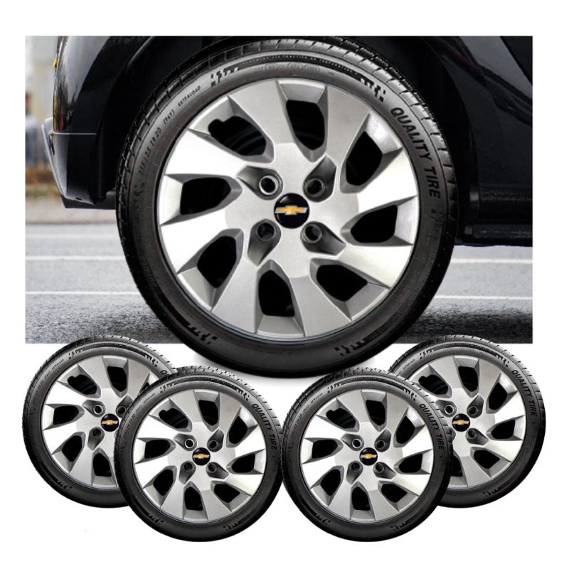 Kit Jogo Conjunto 4 Calotas Aro 13/14/15 Gm Chevrolet Celta Corsa Montana Onix Classic Prisma + Emblema Resinado