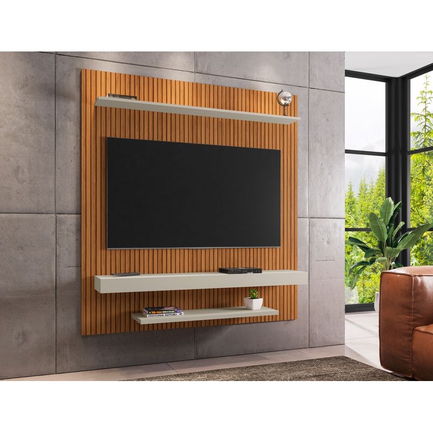 Rack e Painel para Sala Moderno TV 65 Pol Mirage Off White Freijo Giga Moveis