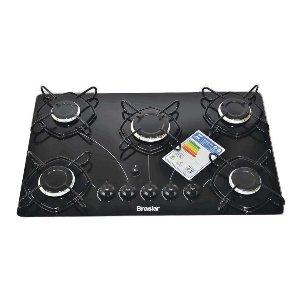 Fogão Cooktop 5 Bocas a Gás Ultra Chama 127V/220V Bivolt Acendimento Automático Vidro Temperado Braslar