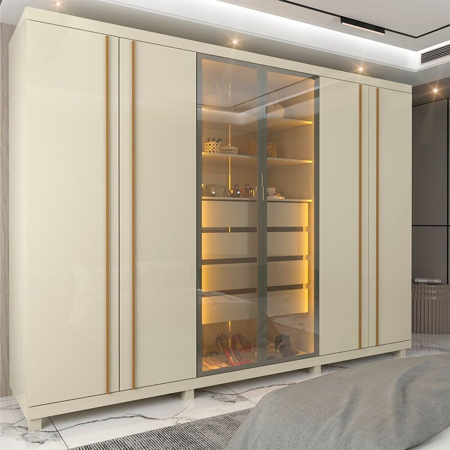 Guarda Roupas Casal 6 Portas com Pés e LED Absolut New Reflecta