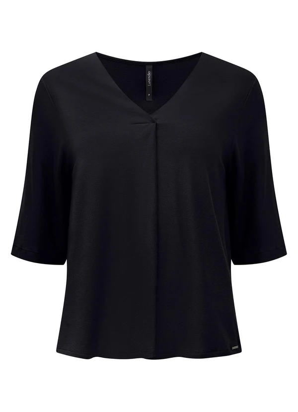 Lunender - Blusa com Decote em V e Mangas 3/4 Crepe Preto
