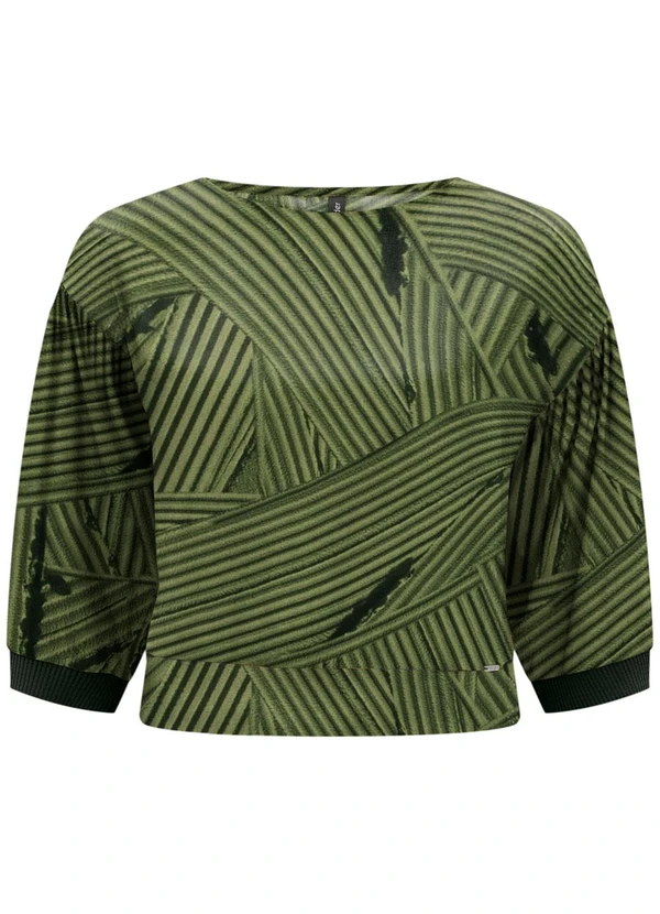 Lunender - Blusa Cropped Estampada com Mangas 3/4 Verde
