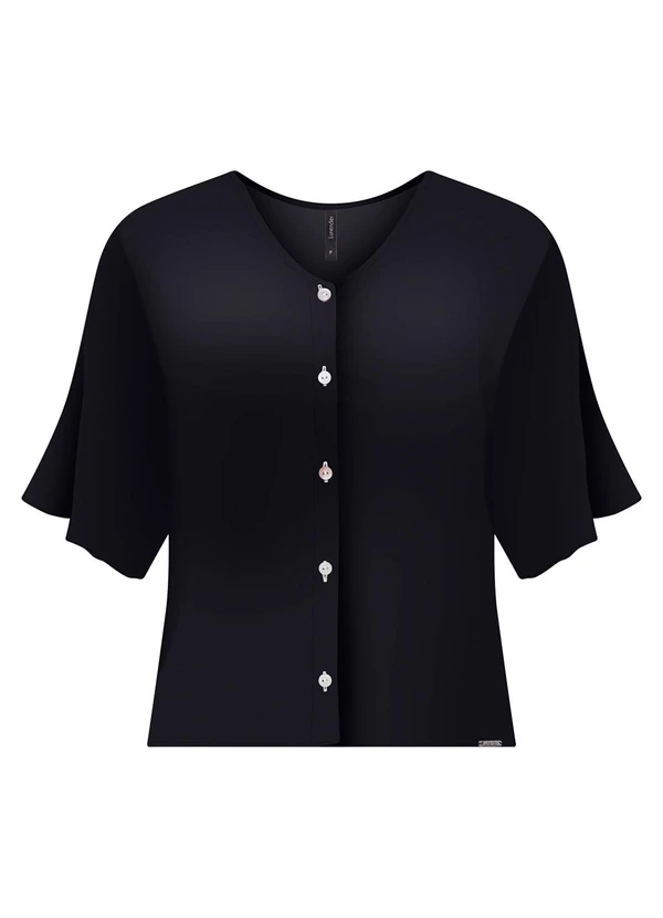 Lunender - Camisa com Decote em V e Manga Curta Preto