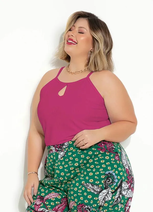 Marguerite - Blusa de Alças com Argola Folhagem Plus Size