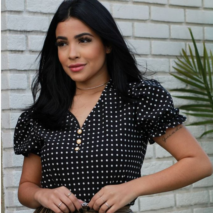 Blusa Feminina Modinha Manga Bufante Com Botões De Atividade E Renda Moda Feminina 3RD SD103