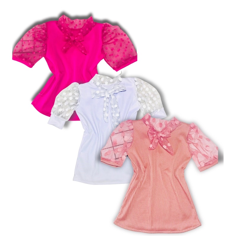 Blusa Infantil Manga Tule Bufante Curta com laçinho Menina Princesa Mini Diva Moda Bloguerinha Lançamento Promoção