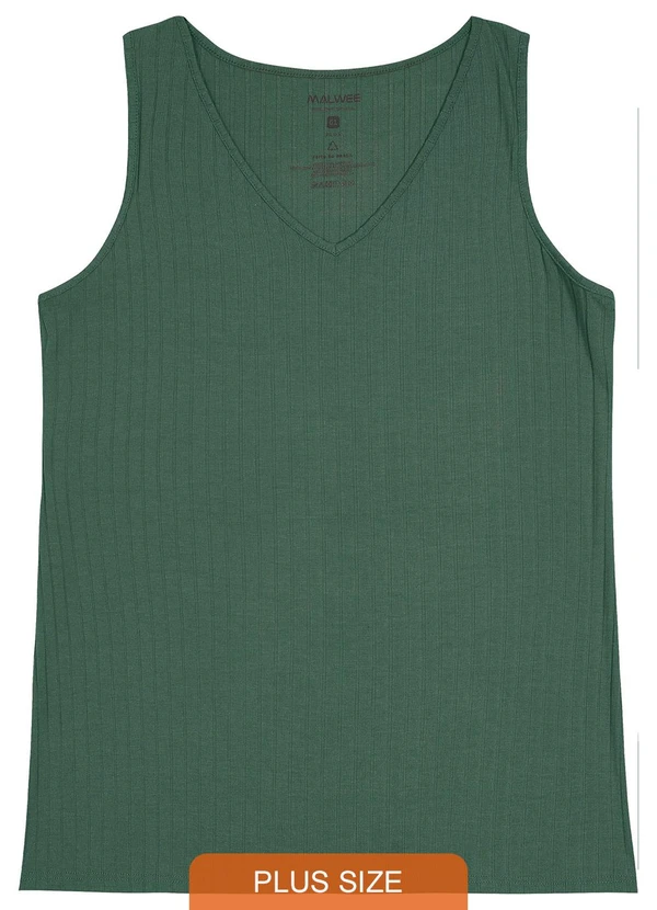 Malwee Plus - Blusa Verde Esmeralda Canelada Decote V