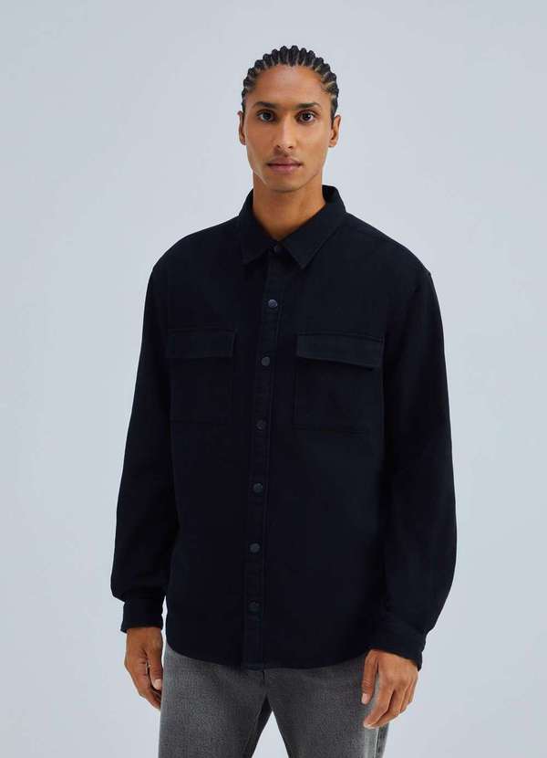 Hering - Camisa em Sarja Masculina Manga Longa Preto