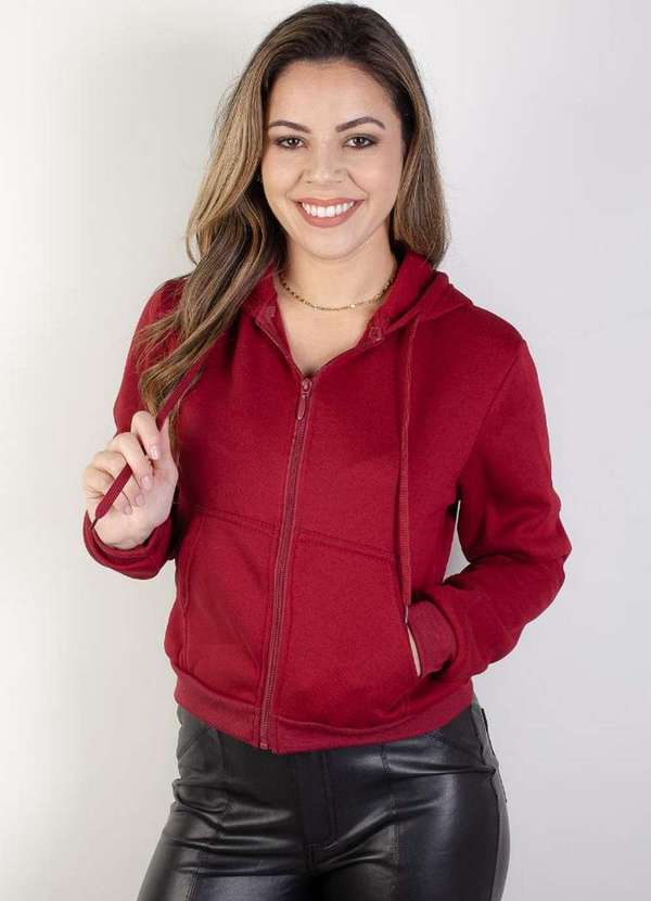 Fluffy - Jaqueta Feminina Moletinho com Capuz 80001 Bordô