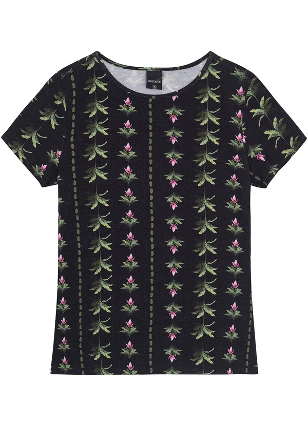 Malwee - Blusa Preto Floral em Viscose Stretch