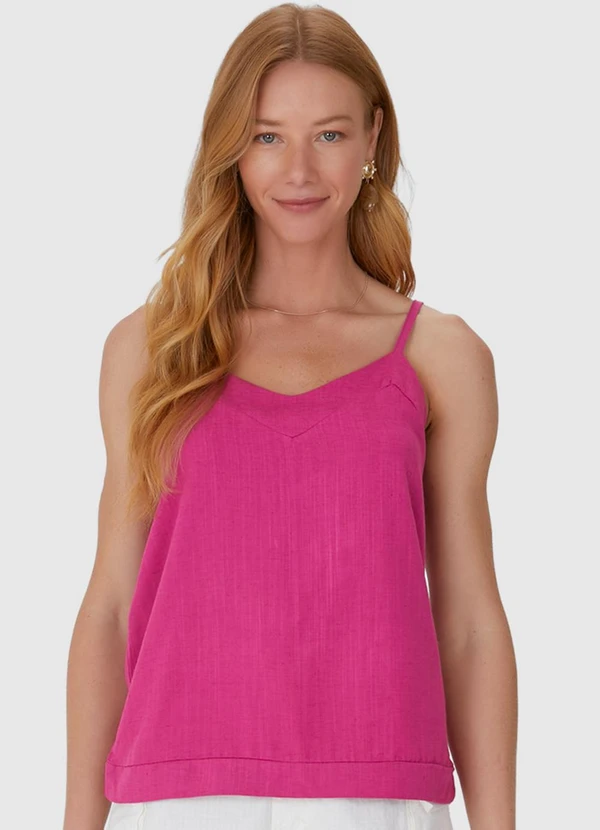Malwee - Regata Feminina com Alça Fina em Viscolinho Rosa