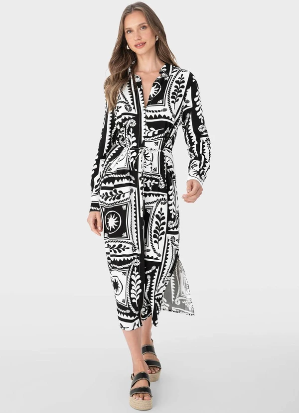 Malwee Plus - Vestido Mídi Tropical em Viscose Off White