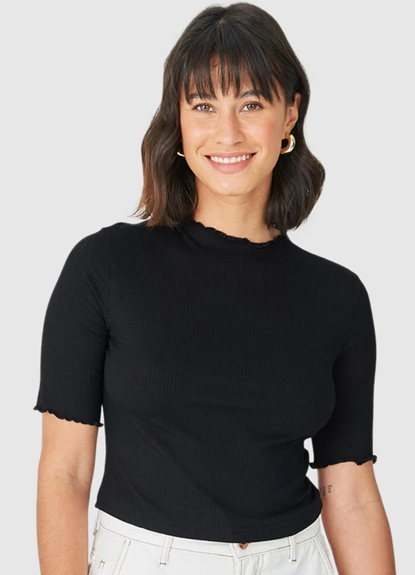 Malwee - Blusa Justa em Viscose Canelada Feminina Preto