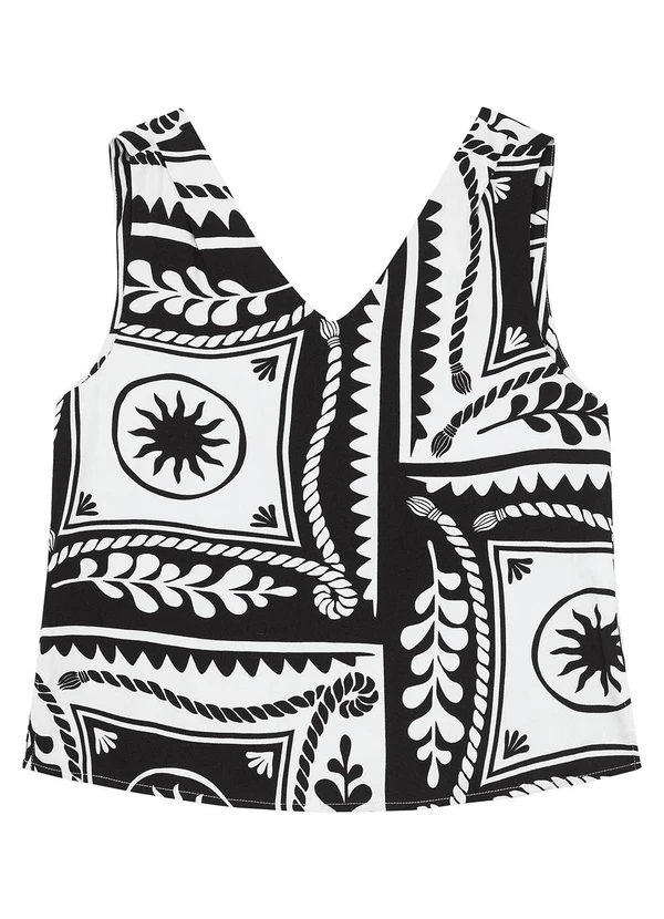 Malwee - Blusa Feminina Tropical Canelada Decote V Preto