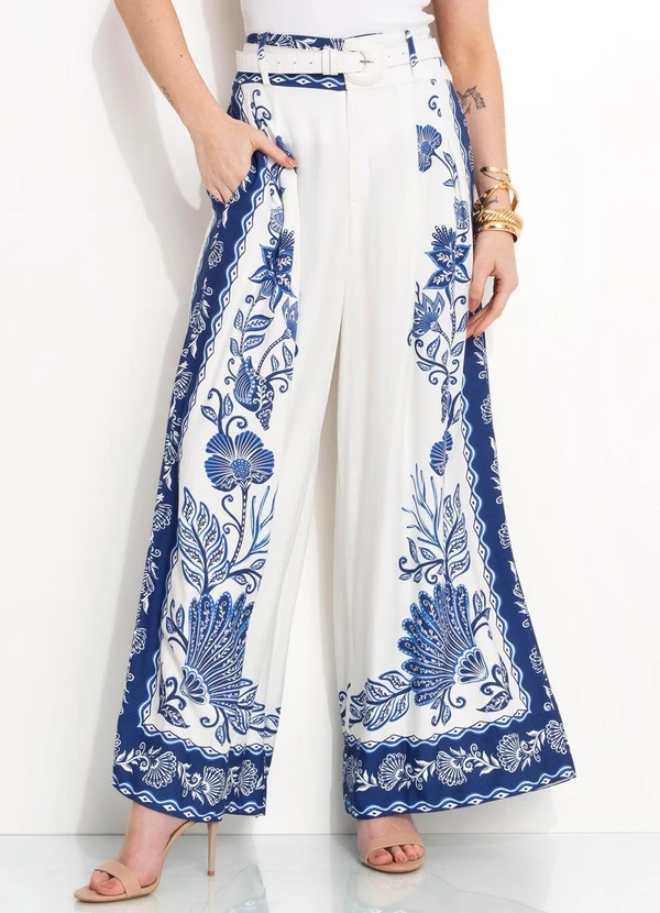 Farm - Calça Pantalona Riqueza Tropical Off White